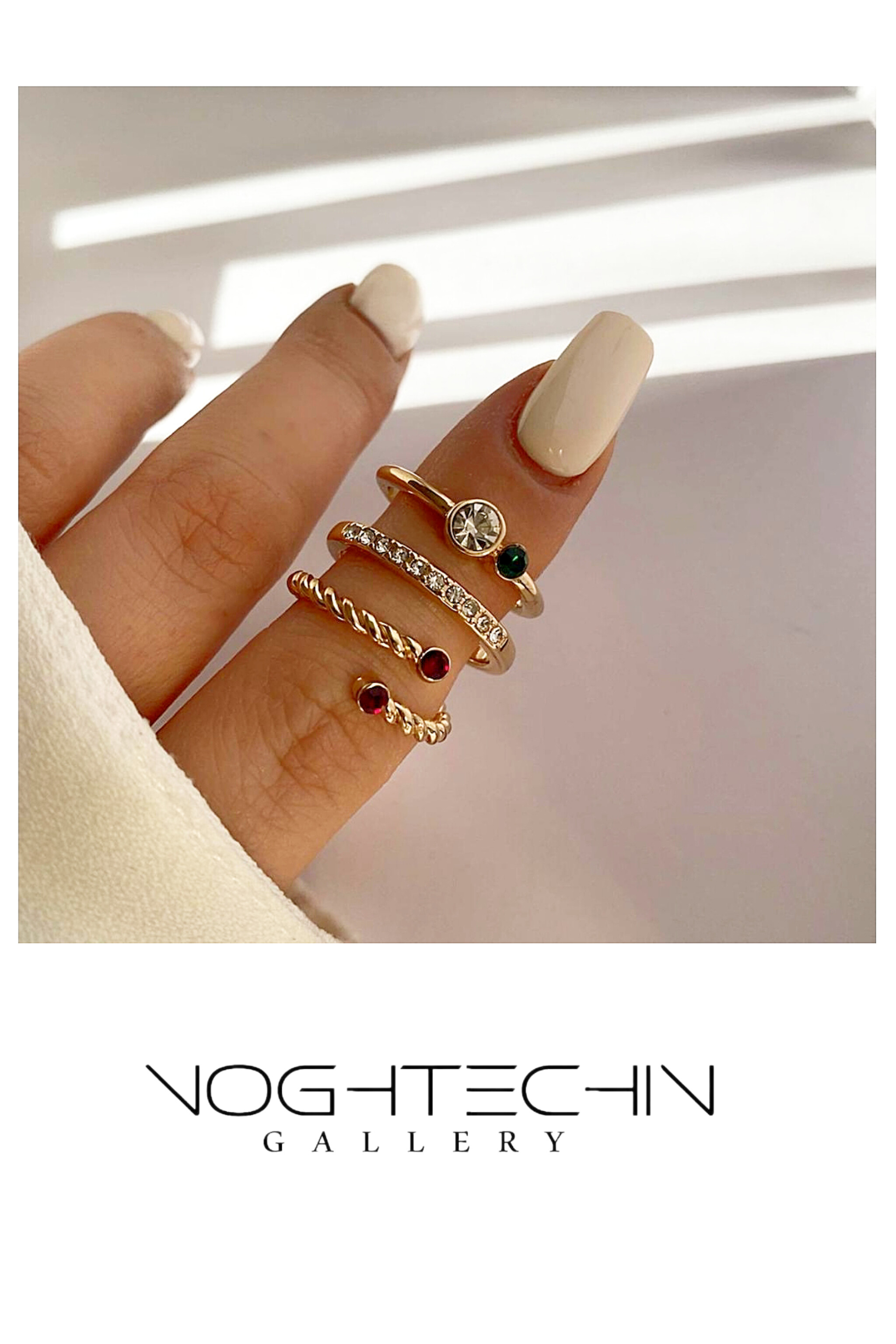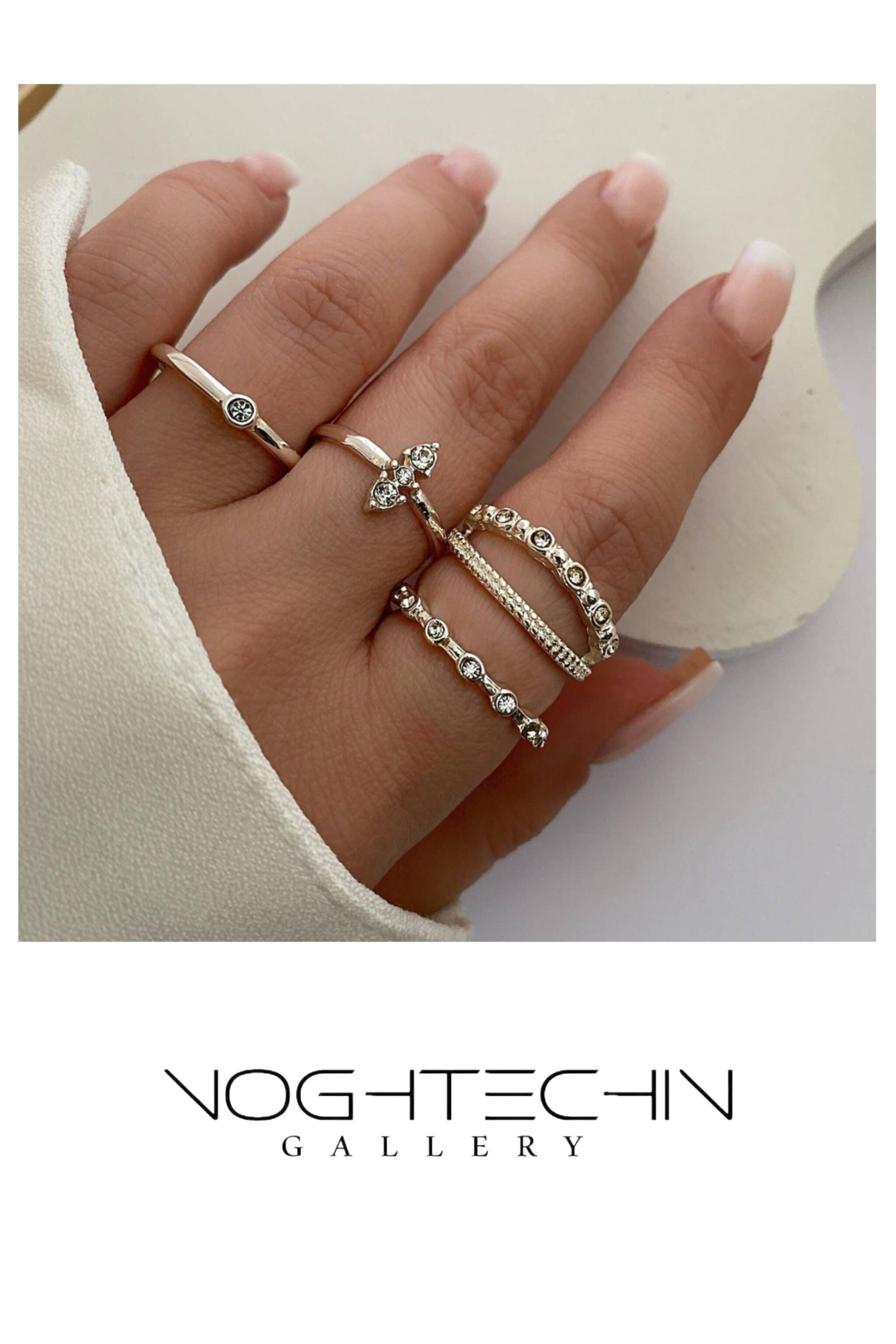 🔹️پک ترکیبی: این پک ها اغلب ترکیب چندین امگشتر از جنس ورنگهای مختلف است. در سبک ترکیبی فرقی نمیکند که از چه تعداد انگشتر و از چه انگشتی استفاده میکنید. معمولا در این سبک از حلقههای بدون نگین و رینگ استفاده میشود.