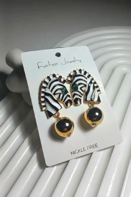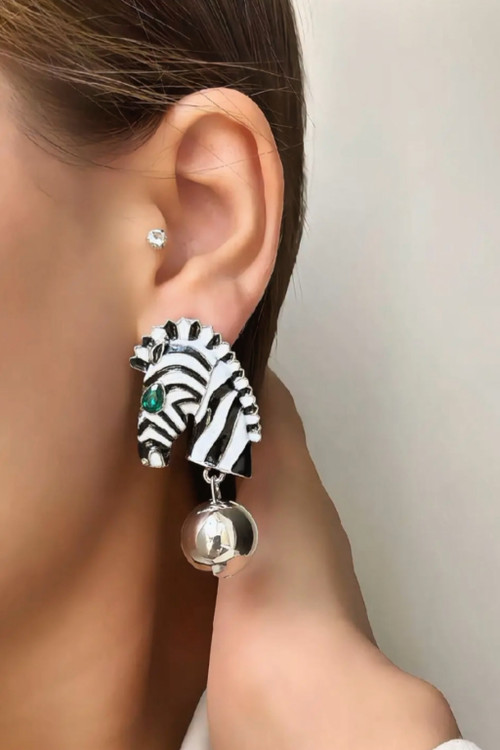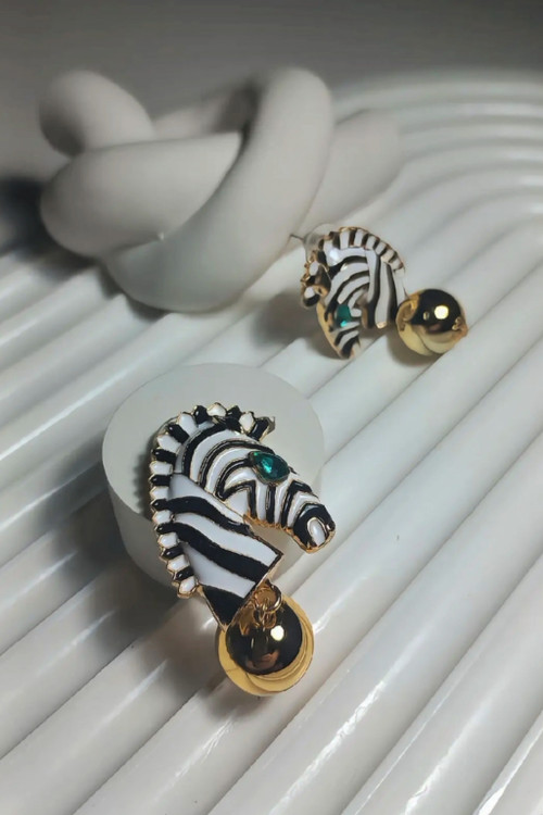 Special and fancy fashion earrings with a steel hanging horse model with gold plating and enamel work