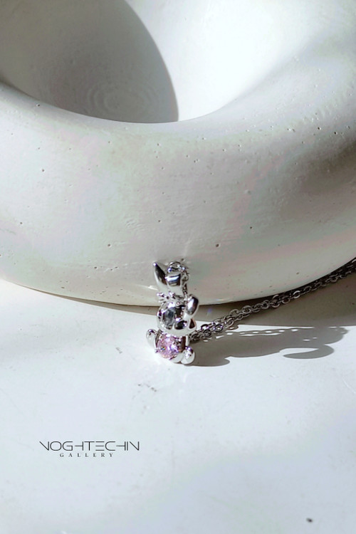 انقدر ناز ودلبره که فقط دوست داری نگاهش کنی،تمام جزئیات داخل تصاویر و مشخصات ذکرشده🙏🏼🐰🩷این گردنبند فانتزی دارای آبکاری نقره ویک نگین الماسی بامخراجکاری قوی هست