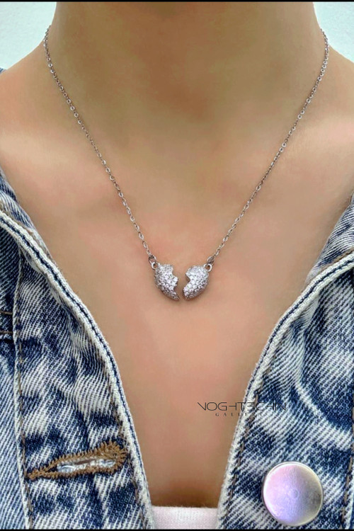 گردنبند زنانه مدل قلب شکسته ی آهنربایی نگیندار رنگ ثابت وارزان