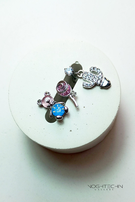 این گوشواره ی(پیرسینگ) ظریف وشیکه که دارای طرح های فانتزیه،بدنه ی کار استیل با آبکاری نقره ۹۲۵ عیاره ودارای نگینهای ریز ومخراجکاری شده هست🤍✨️
