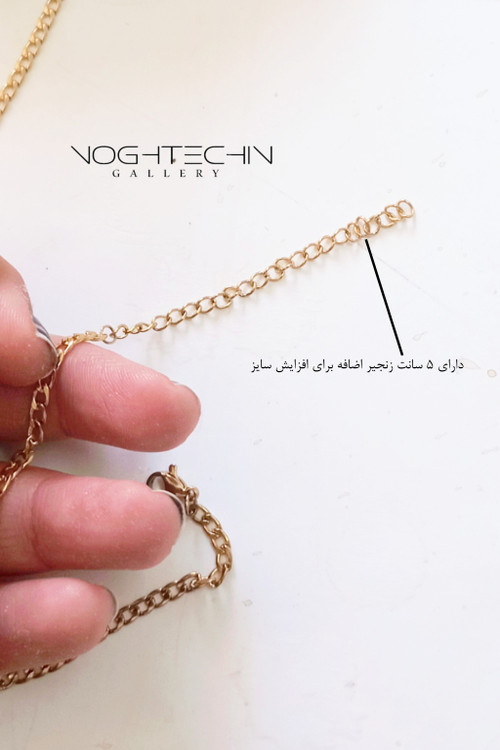 سایز دستبند: تا دور مچ ۱۸ (دارای ۵ س.م زنجیر اضافه)