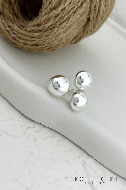 انگشتر جدید آبکاری نقره مدل سه گوی فری سایز با پایینترین قیمت