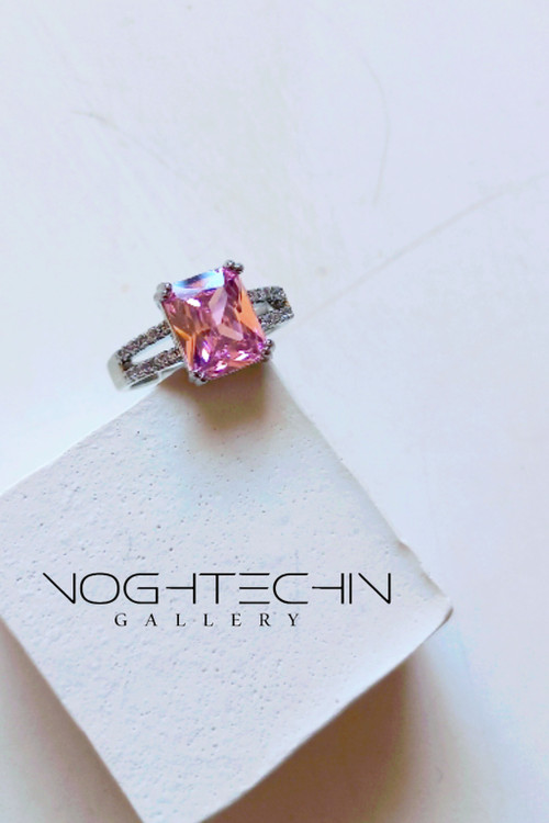 خرید انگشتر جدید وترند جواهری نگین صورتی ارزان قیمت