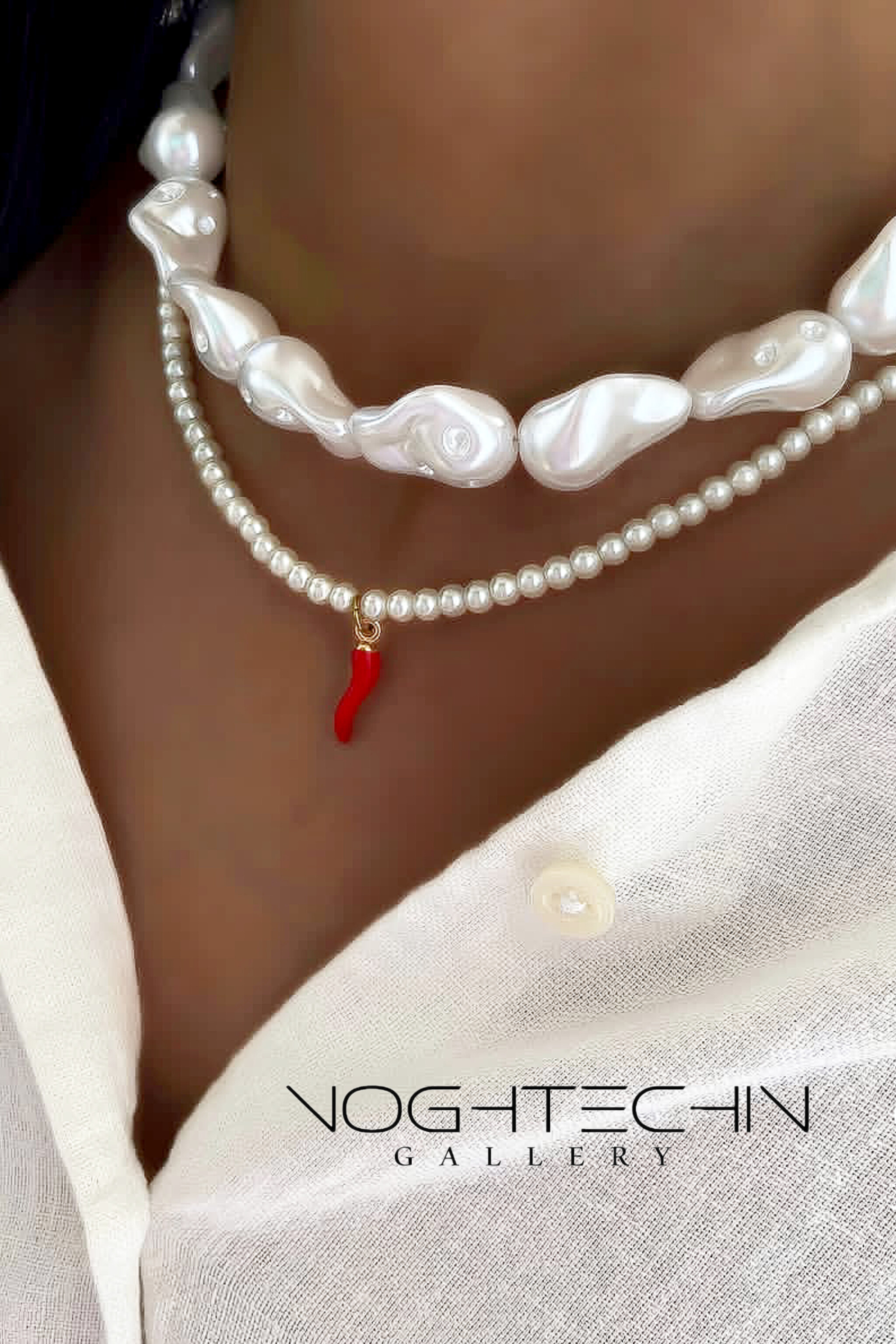 خرید گردنبند خاص مروارید با پلاک فلفل با قیمت مناسب