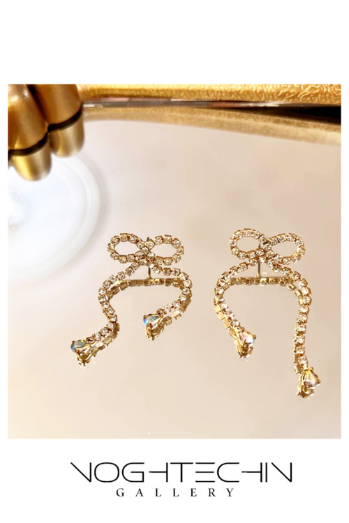 گوشواره زنانه برند وای اس ایکس مدل پاپییون جواهری نگین‌الماسی وارداتی